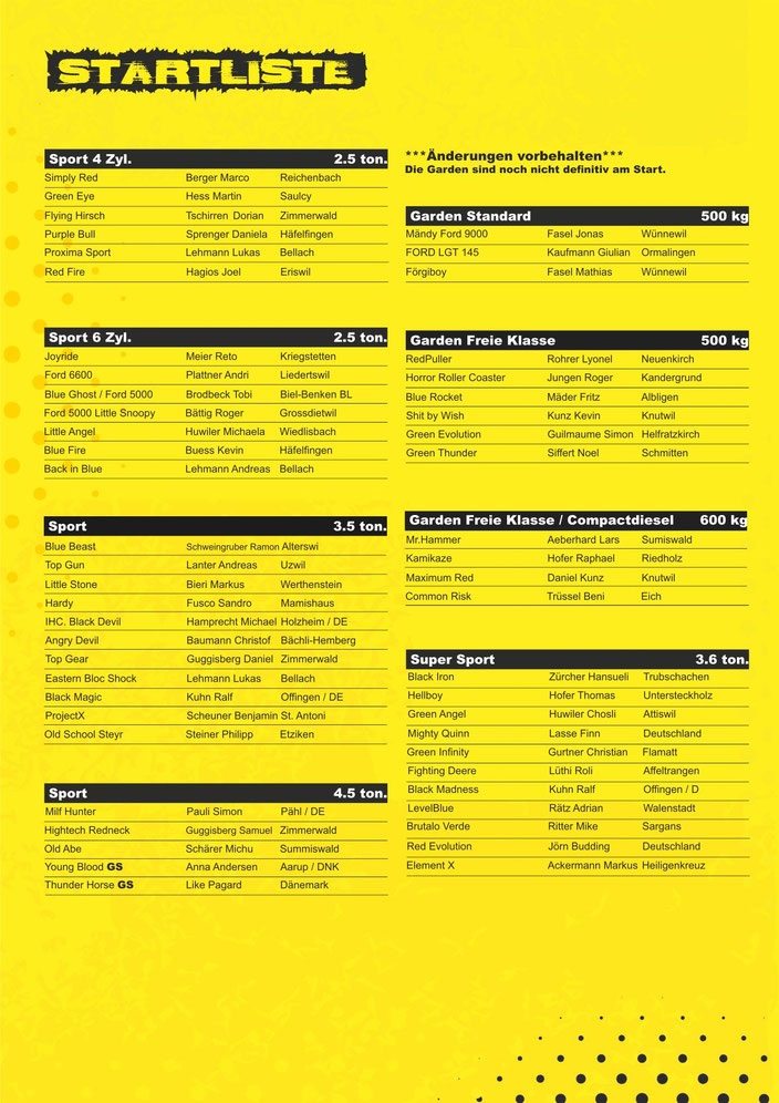 Neu fahren wir am Samstagnachmittag (09.08.25) einen Eurocup Lauf in den beiden Klassen; Pro Stock und Super Stock. Sei dabei wenn die besten Tractoren aus Schweden, Finnland, Dänemark, Niederlande, Belgien und Deutschland um jeden cm kämpfen.